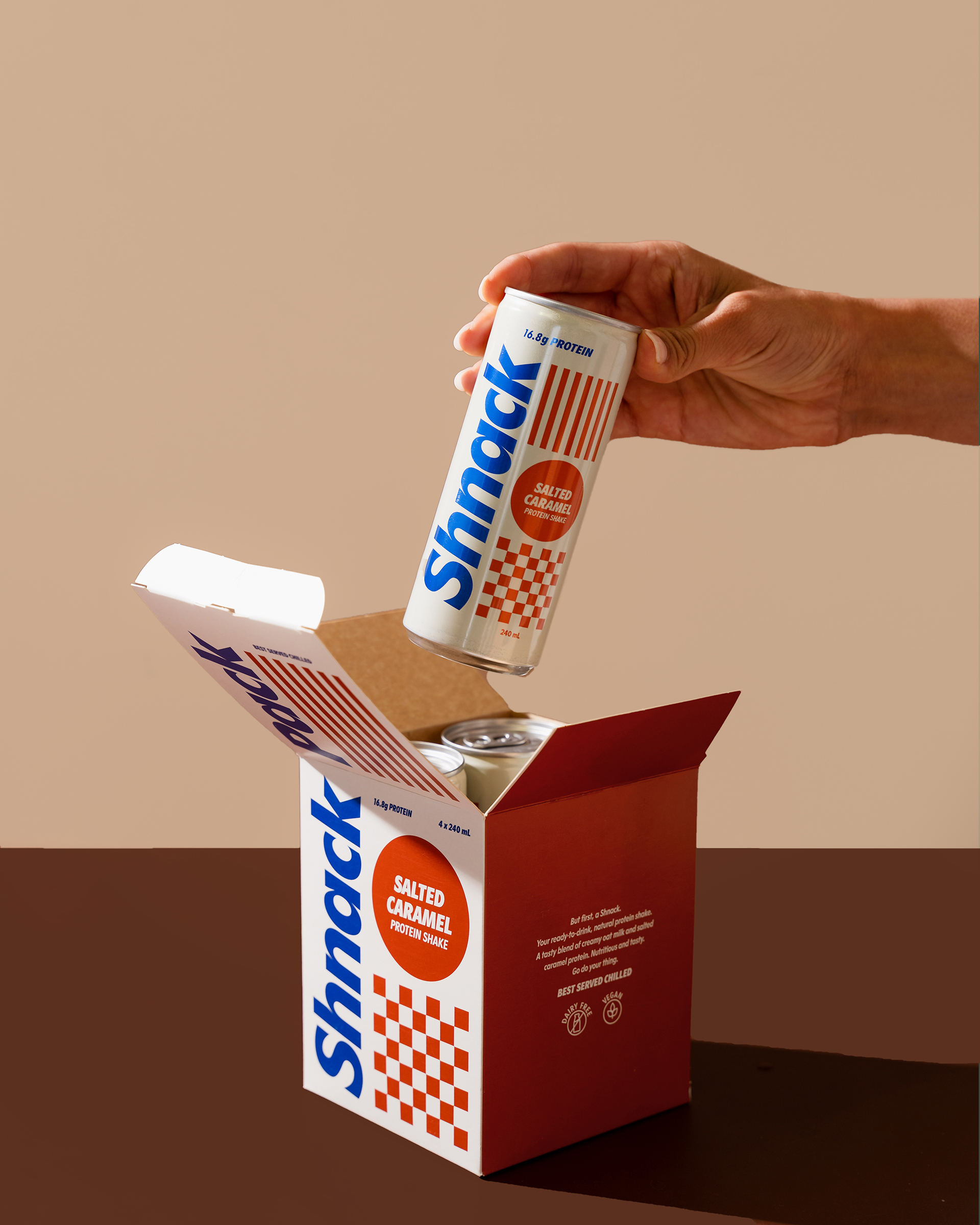 Working with Other Thing, we came up with a fun, unique name and identity for Shnack, a new protein drink, built around sporty motifs to communicate the fast, energetic nature of the product.